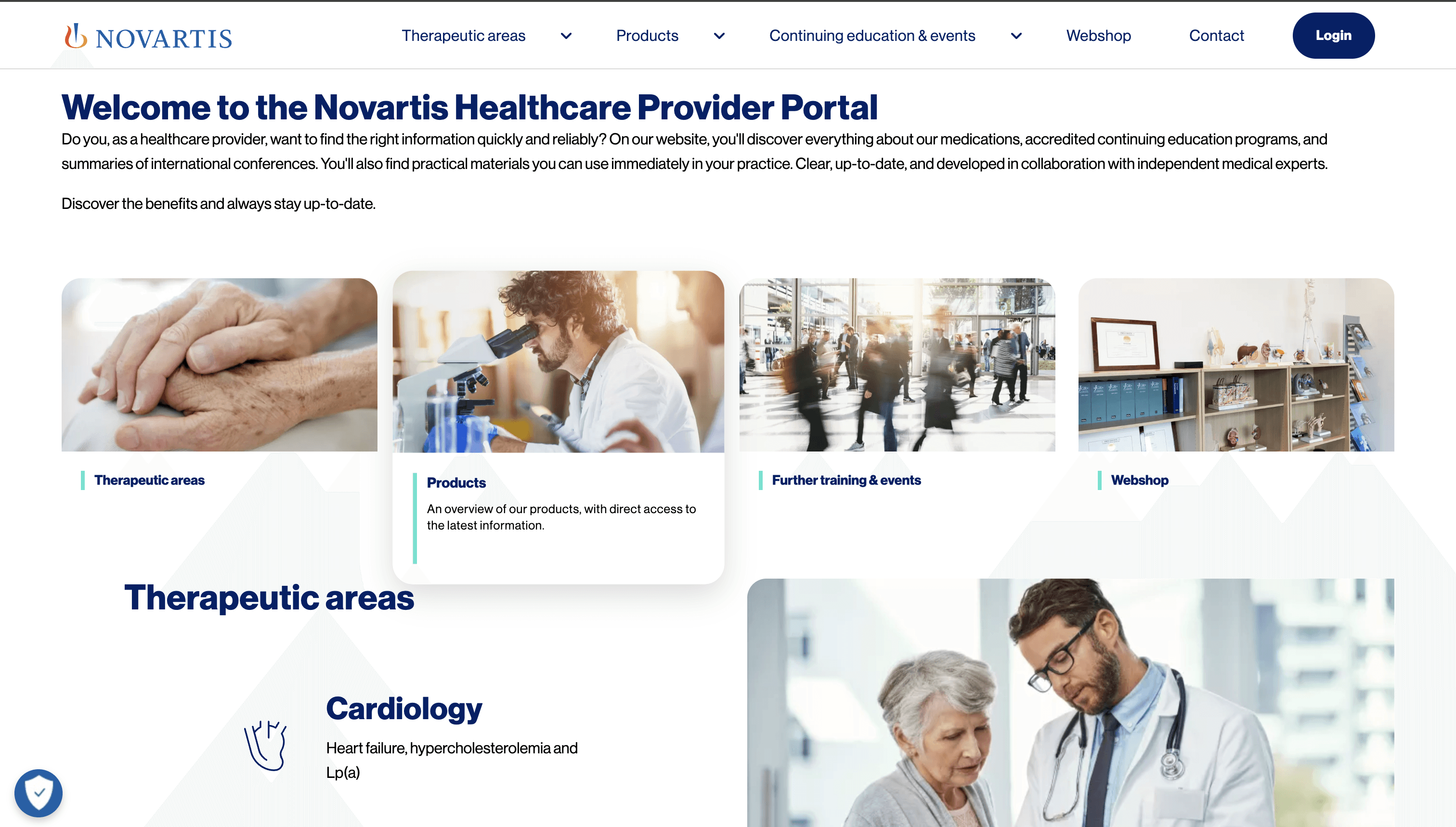 They covered every major Novartis page type, including Home, Search, Disease area, Medical Science & Product